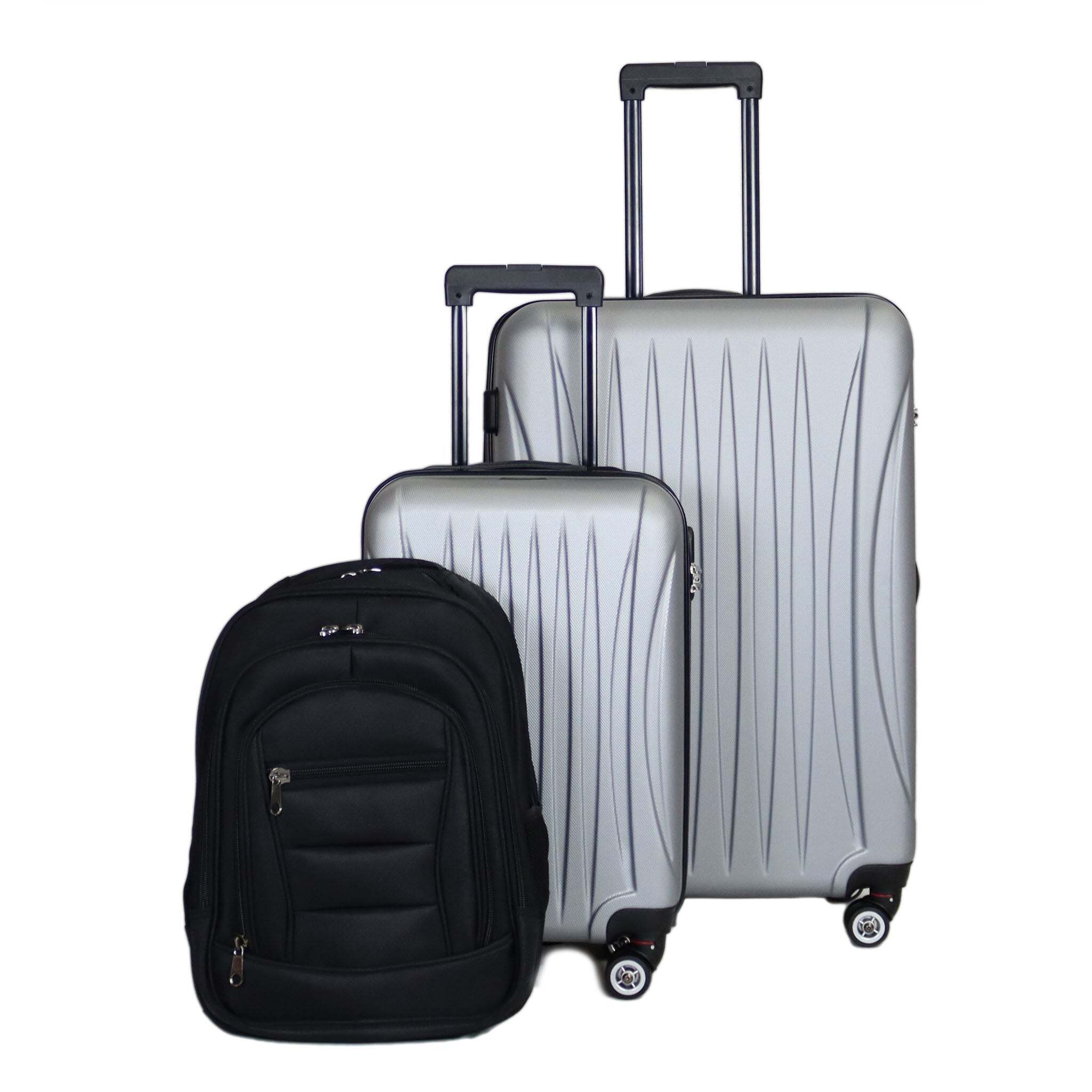 PRINCESS TRAVELLER LAS VEGAS HARD ABS SHARK SKIN SUITCASES SET 3 PIECES SILVER/BLACK