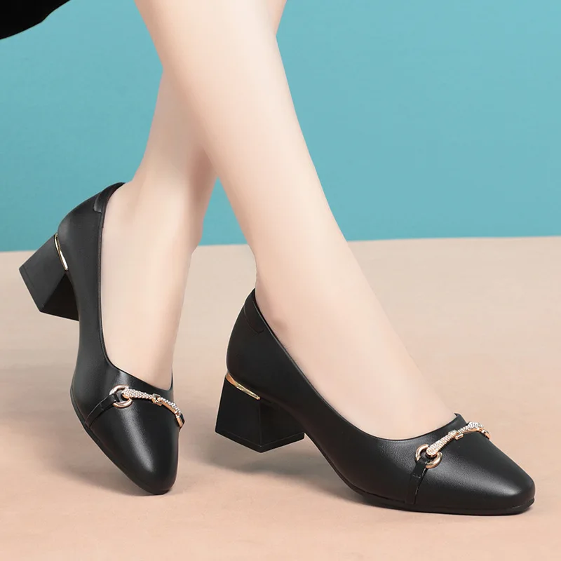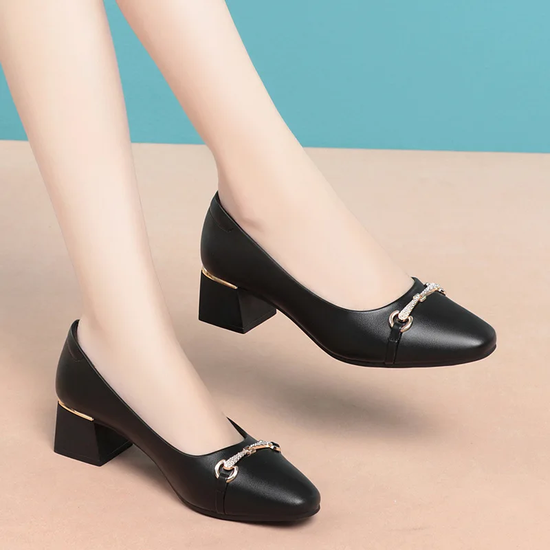 New arrivals elegant office leather low heel shoes lady shoes soft comfortable professional work shoes