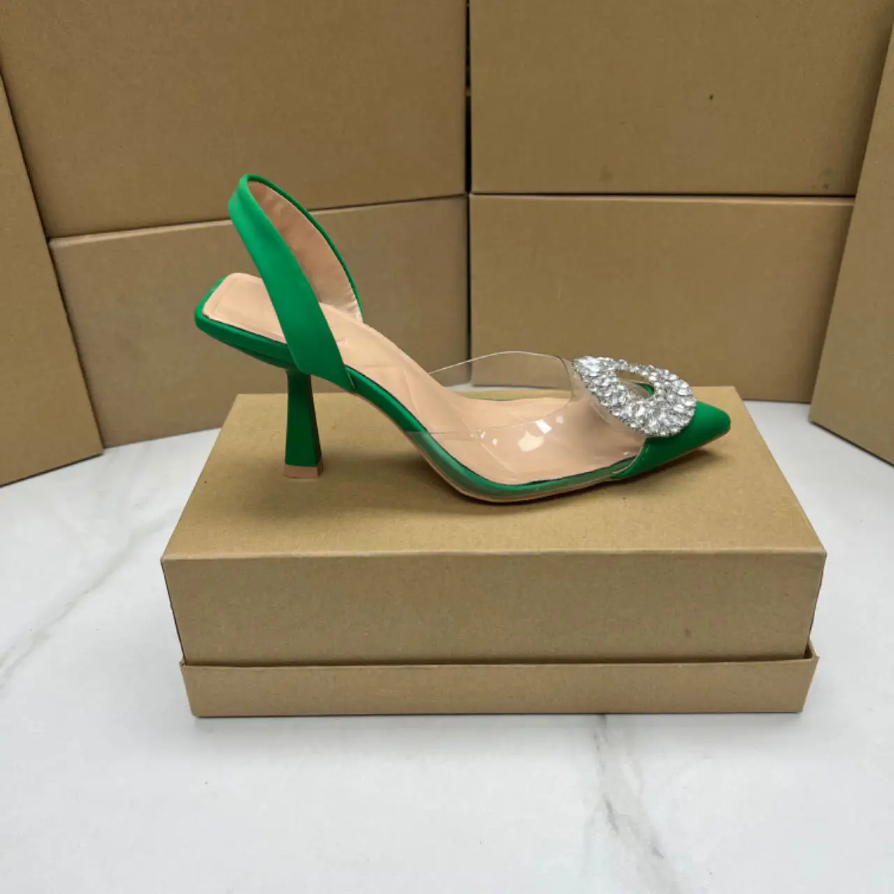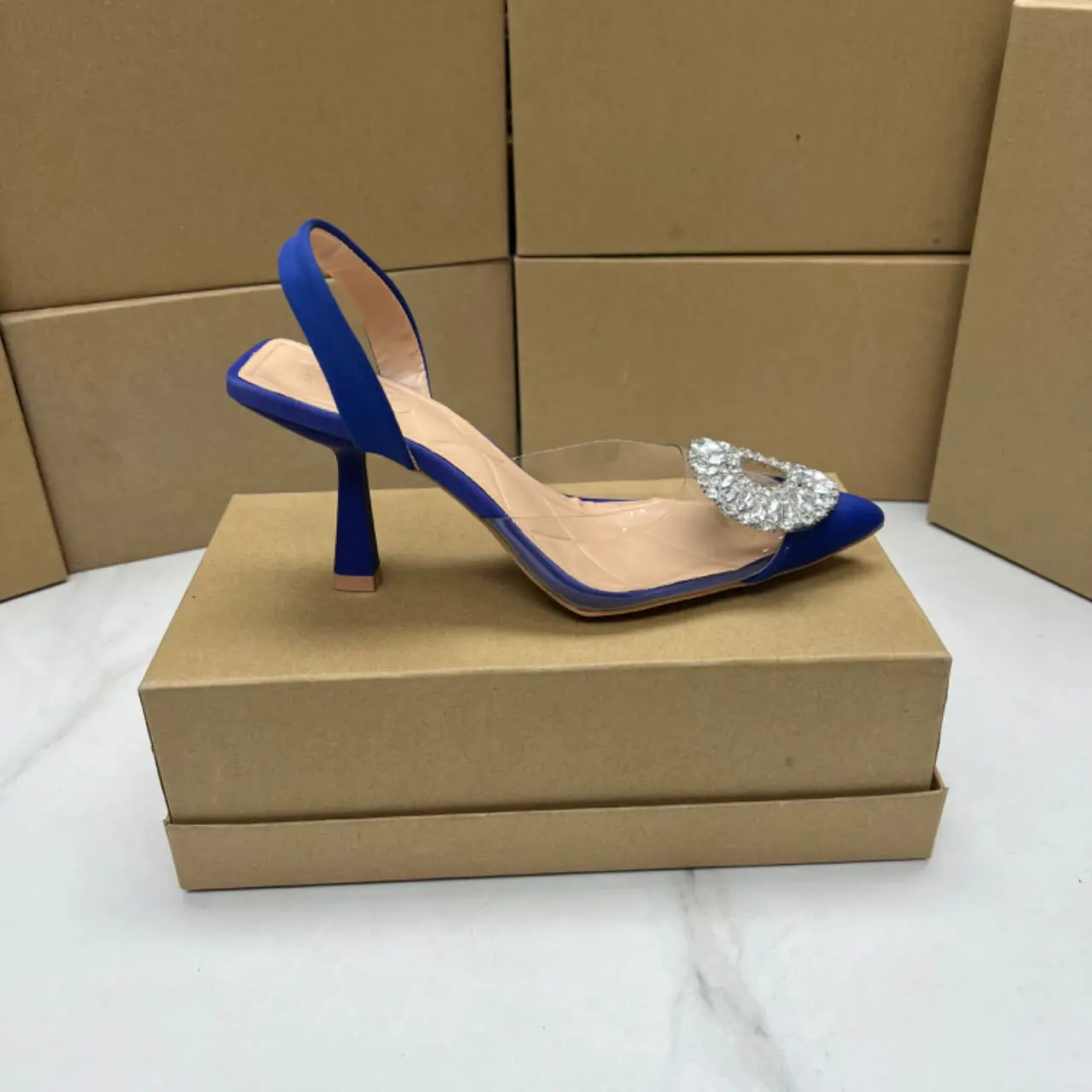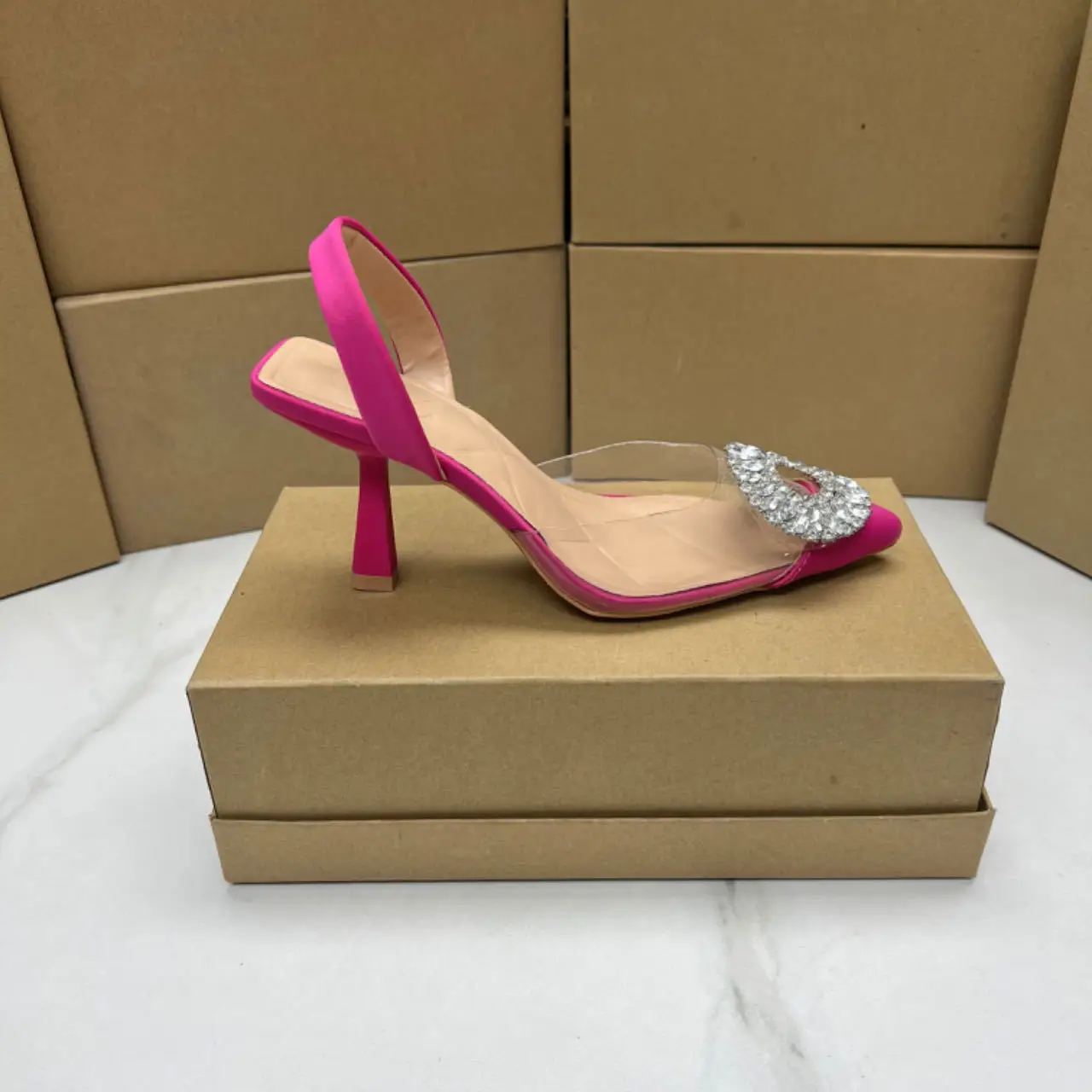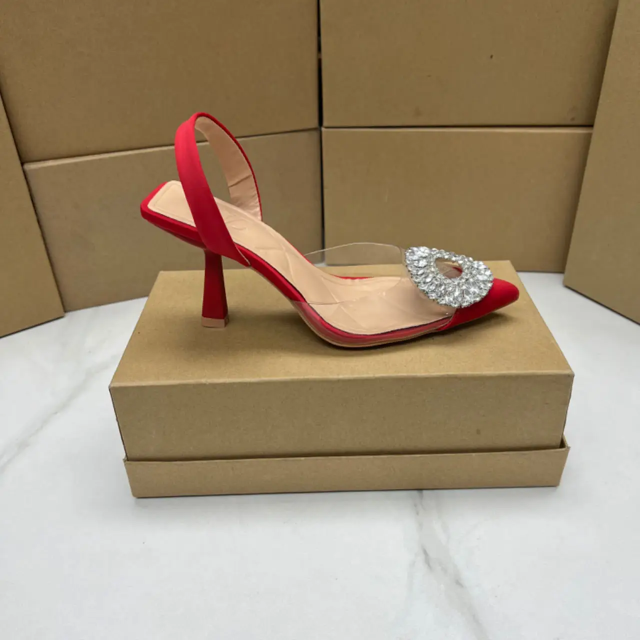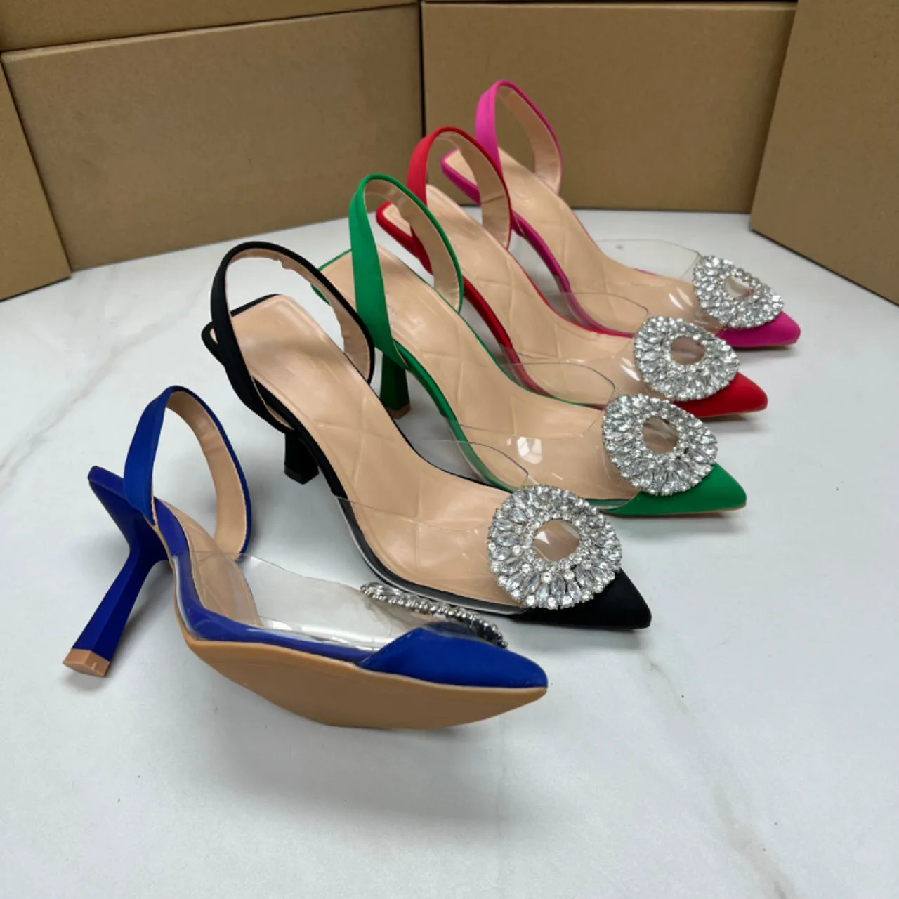New fashion round buckle sexy transparent surface comfortable high heels pump rhinestone women sandals