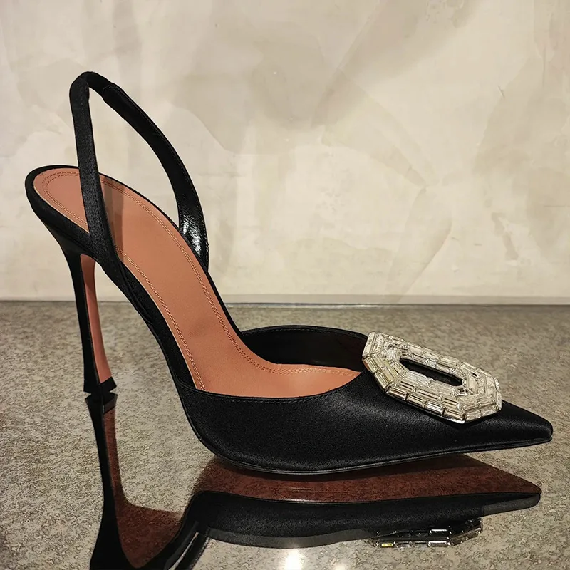 Spring and summer new rhinestone pointed sexy oval rhinester buckle hollow party stiletto high heels woman sandal