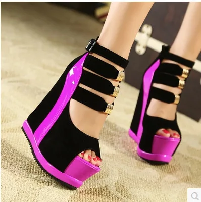 Summer new fashion Height increasing nightclub high heels waterproof platform colors wedge heel sandals Roman shoes