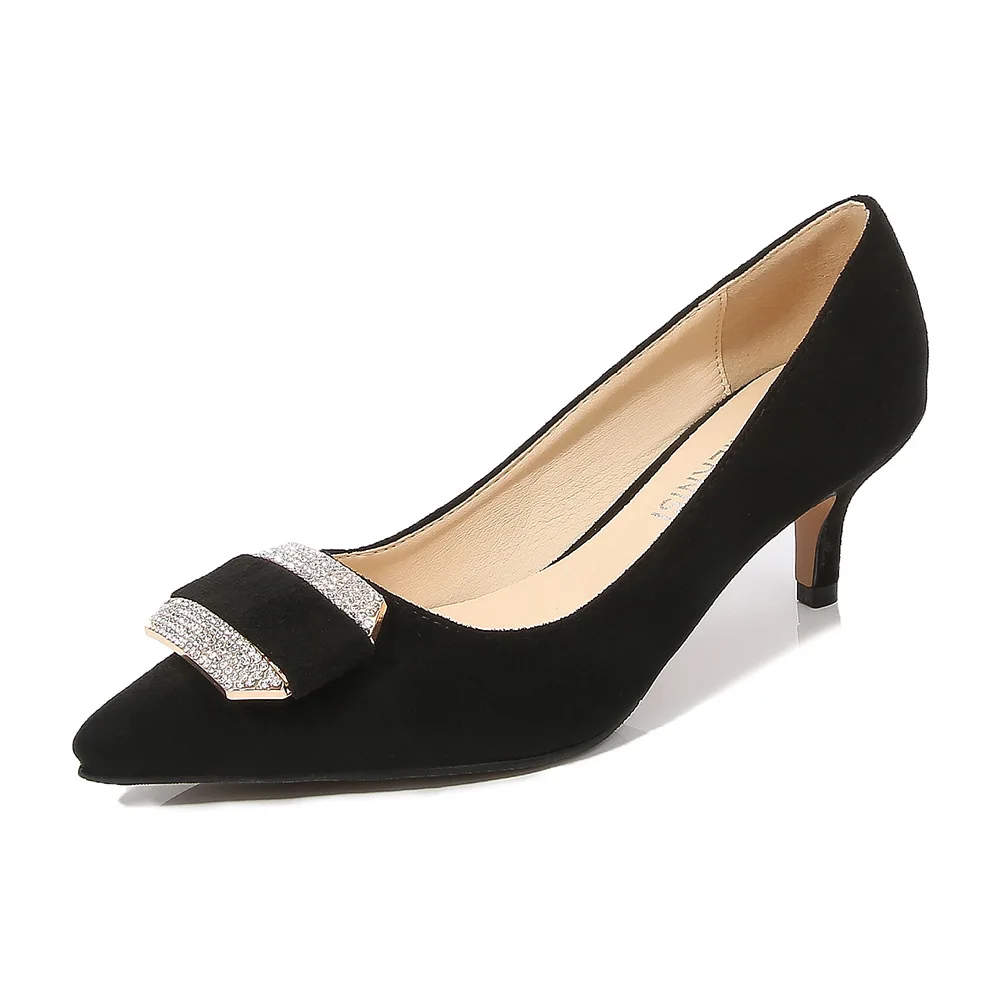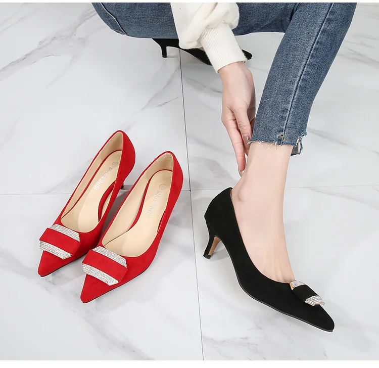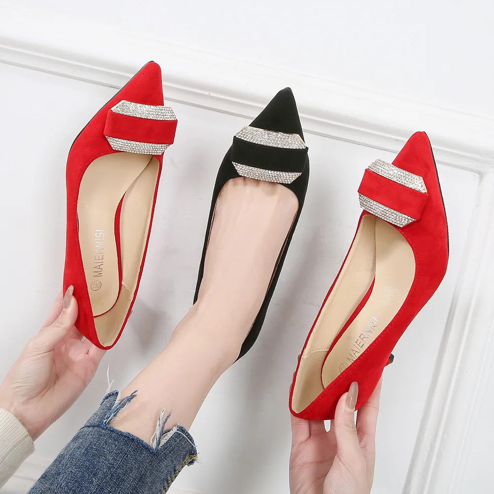big size Korean fashion pointy suede pointed shallow medium heel africa shiny rhinestone shoes pumps for women