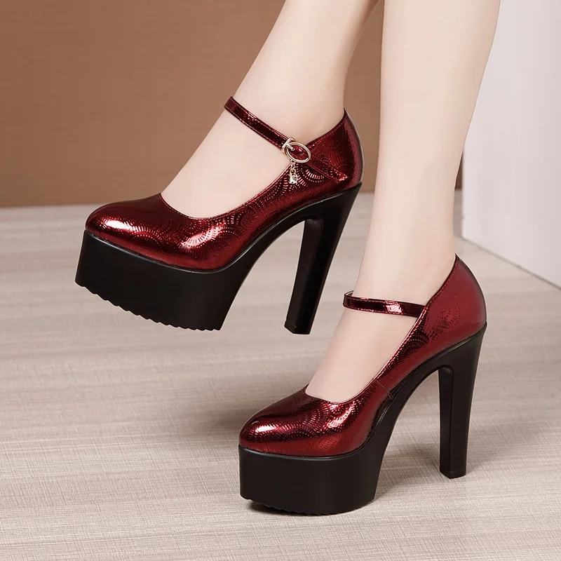 big size new summer genuine leather thick sole high heel wedding shoes for bride