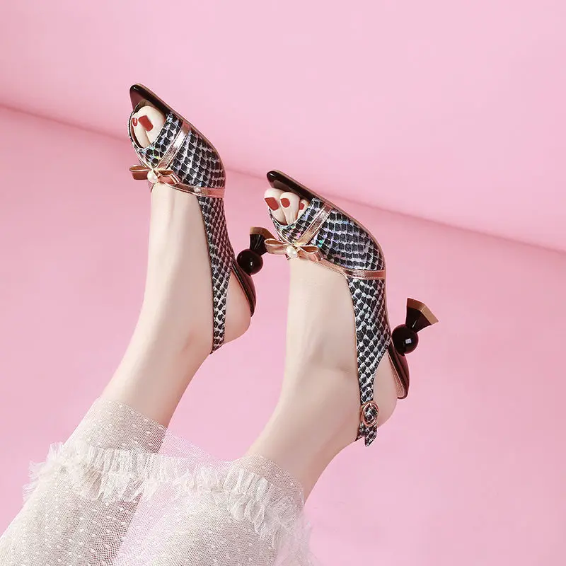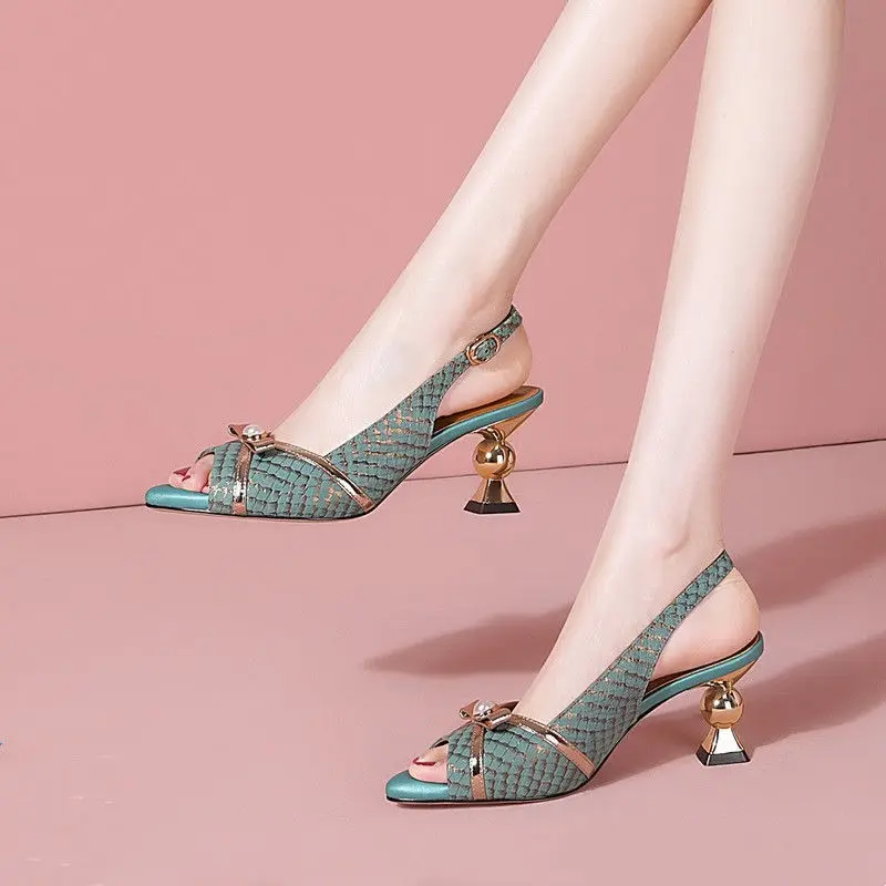 designer formal Pointed head Women's high heel Sandals Red green unique banquet wedding bridal dress ladies pumps