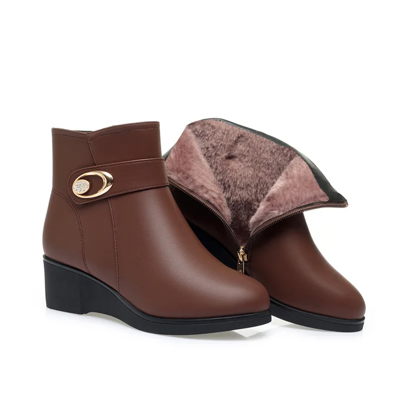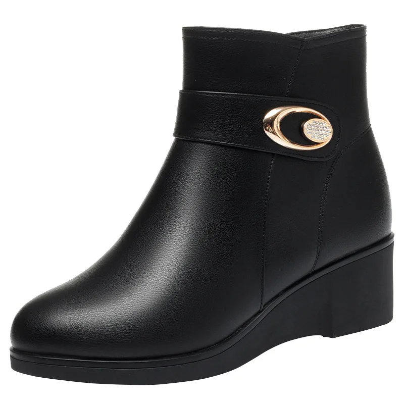 hot sale winter warm black leather wedge heel ankle boots wedges shoes ladies women