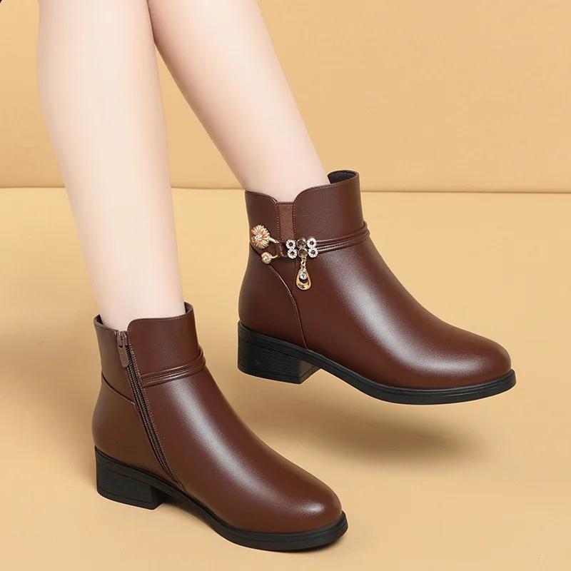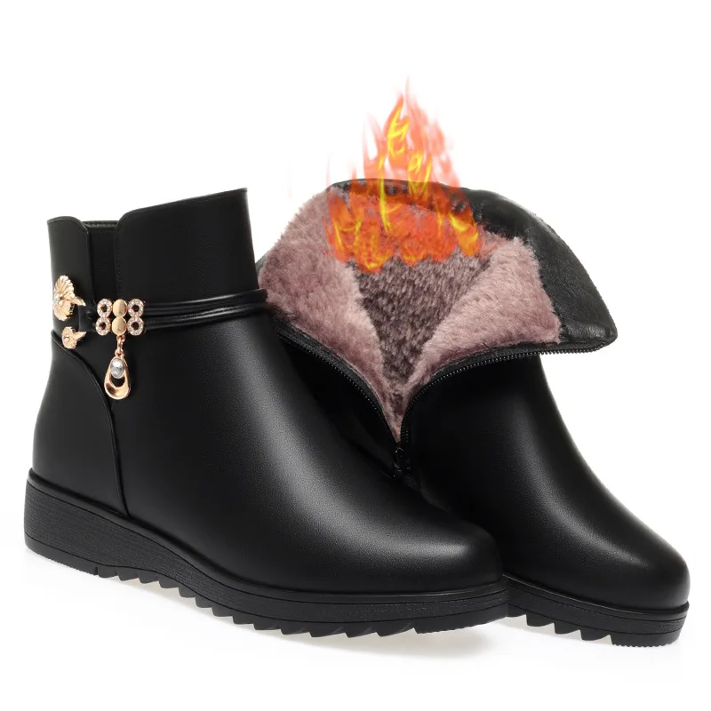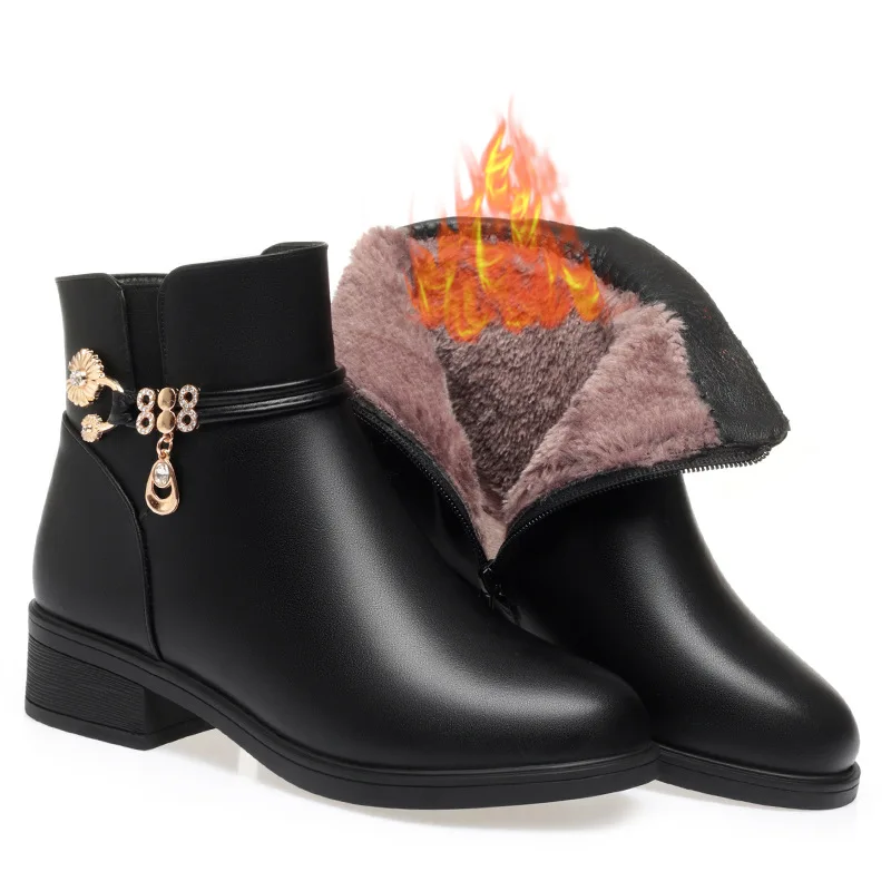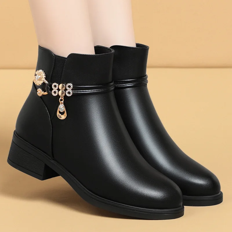 new design winter round toe mature sexy ladies black Soft soled cotton shoes comfortable warm leather shoes boots
